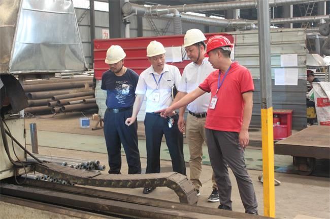2018年7月25日,今天中南鋼構客戶冒著高達40度高溫來我公司進行實地參觀考察,好的產品和服務,雄厚的公司資質和信譽,良好的行業發展前景,是吸引此次客戶到訪的重要原因。公司總經理楊兆然代表公司對客戶的到來表示熱烈歡迎,并安排了細致的接待工作。在王佳宴副總和駱樹國副總的陪同下,客戶參觀考察了公司生產車間,對客戶提出的各類問題,公司領導均作出細致解答,豐富的專業知識和有素的工作能力,也為客戶留下了深刻印記。